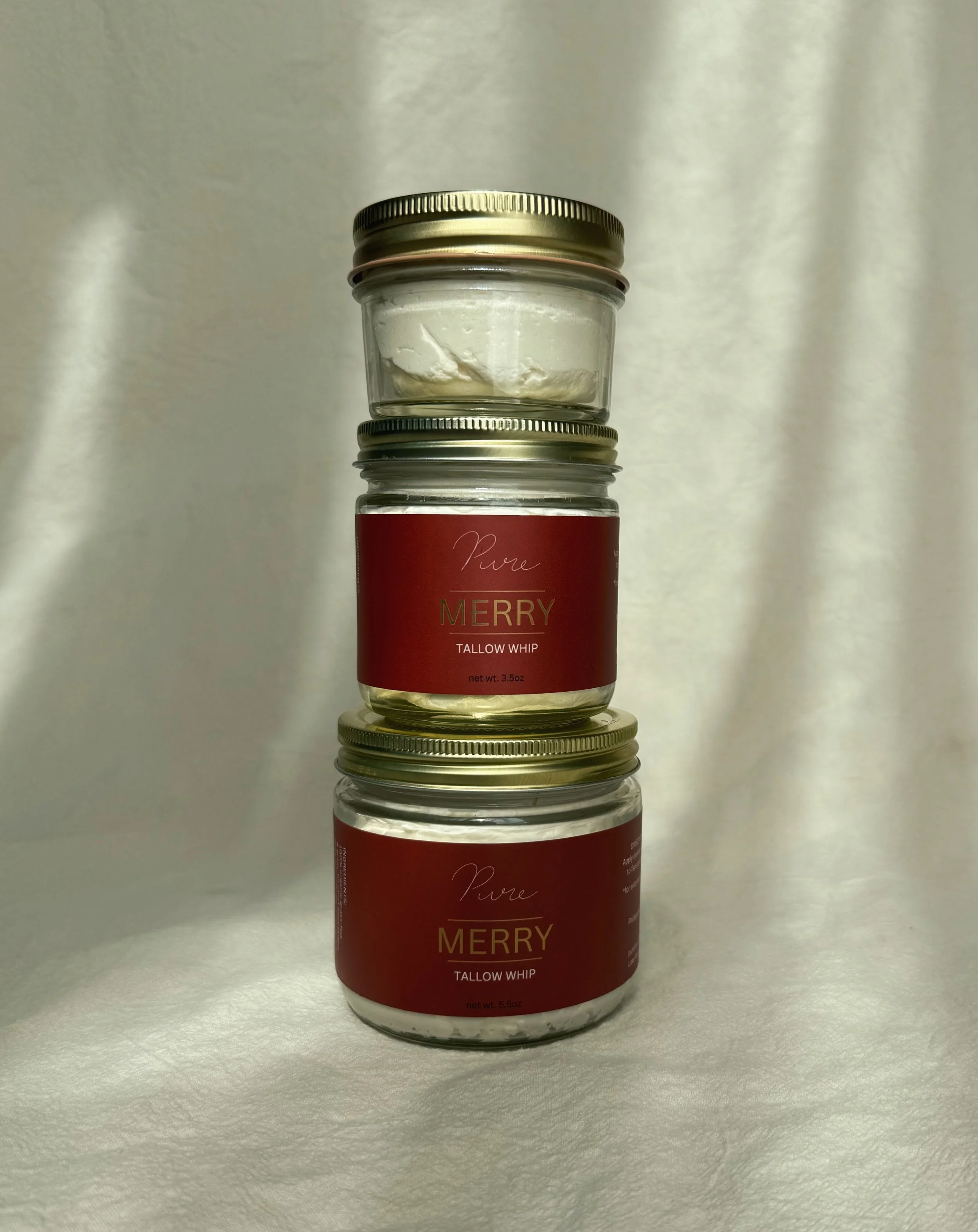 WHAT IS TALLOW: Tallow is extremely nutrient dense cow fat surrounding the animal’s organs. It is rendered beef fat which is also known as suet. As listed above, tallow contains vitamins A, D, E, B12 and K, which are all antioxidants that are known for fighting free radical damage. This combination of vitamins is only found in animal products! The fatty acids and lipids in tallow are so similar in molecular structure to the composition of human skin and in our natural oils (sebum), making tallow incredibly compatible with our skin. This allows for high absorption improving our protective barrier function of the skin. All of these wonderful things prevent moisture loss and aids in regenerating the appearance of healthy, youthful-looking skin. Tallow is anti-inflammatory, anti-fungal and anti-microbial which makes it great for eczema, rashes, acne and so much more!